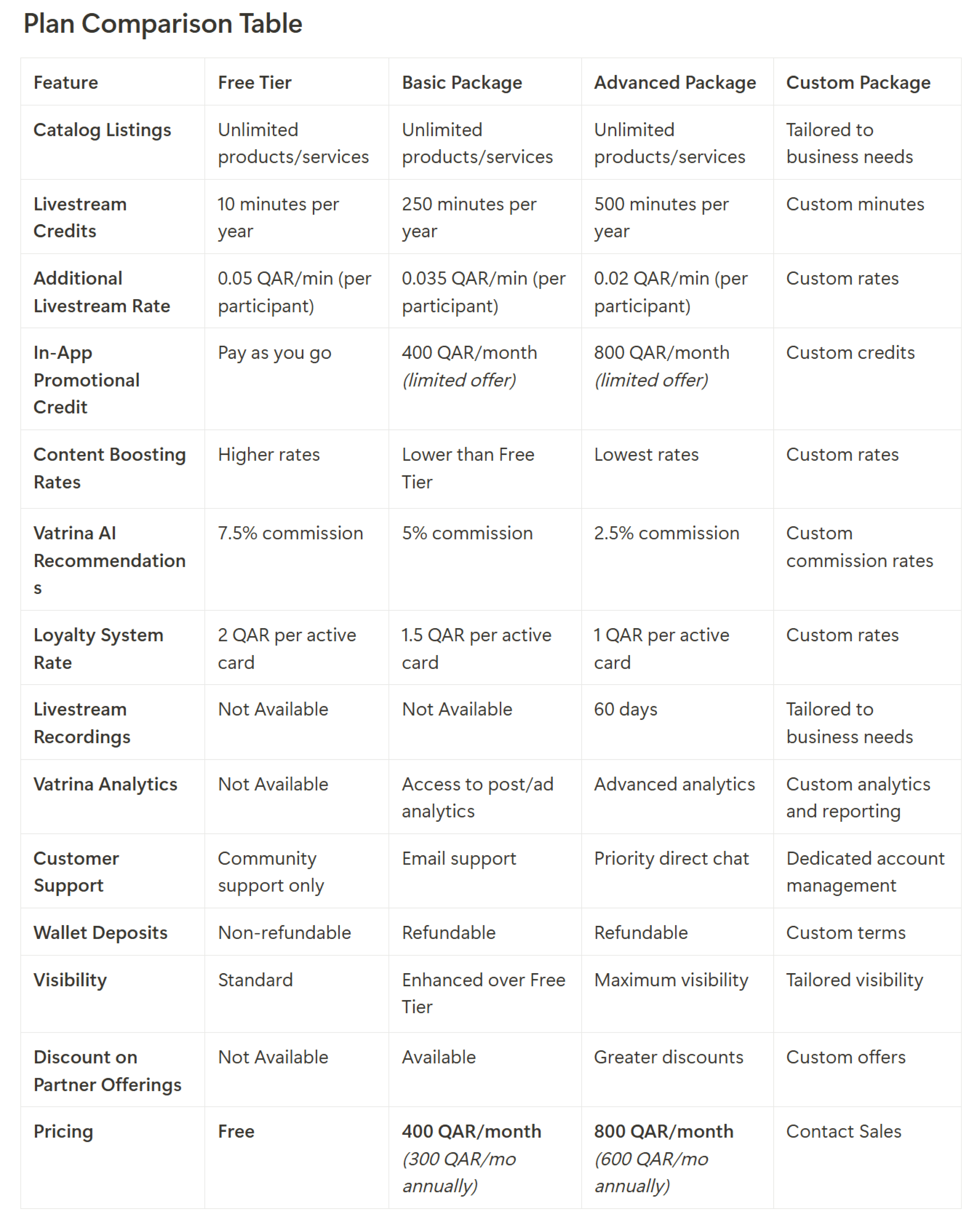 Ideal for small businesses or vendors exploring Vatrina for the first time. It provides unlimited product listings and basic access to livestreams and promotional tools at a pay-as-you-go rate.